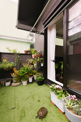 【バルコニー】建物の一部を減築して広くなったバルコニー。趣味のグリーンやペットの亀のお世話をしたりと、多目的に使える空間に