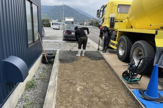 静岡でNo.1売上の車屋さんのご依頼で雨が降るとベチャベチャしてしまう箇所をコンクリート施工をと言う事で、周りが既に決まっていたので水勾配が難しいと言う事で、雨水を浸透させるドライテックコンクリートを採用しました。