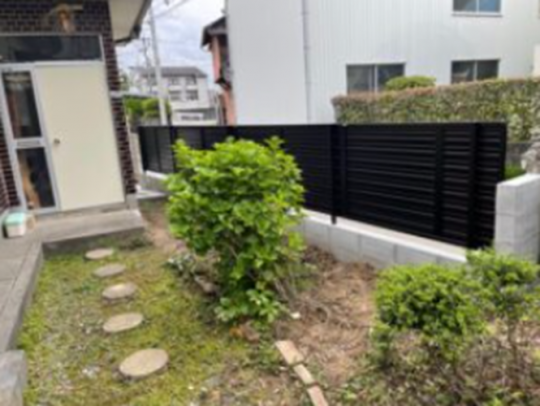 植栽から目隠しフェンスに変えることでスッキリとした印象に。