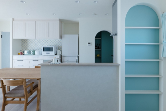 デザインだけでなく、飾り棚やキッチンのLDK側の収納など、暮らしやすさも考慮。
