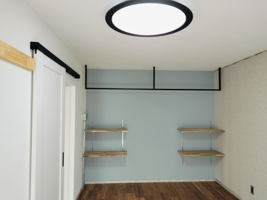 畳からフローリングに張替物入枠をノダの折れ戸と観音扉に変更しました。