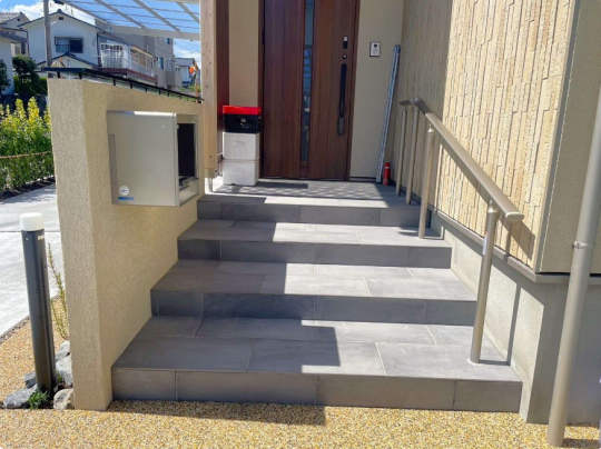 タイル階段も玄関から出て正面ではなく、少しずらすように施工し直しております。