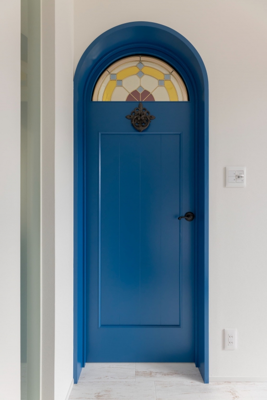 「世界で一番好きな場所」の記憶をヒントに、その色やかたちをさりげなく住まいへ反映。アーチ扉に埋め込まれたステンドグラスがやさしく光を纏い、木目、マットな框キッチン、石天板が重なり合うLDKには、どこか海外の邸宅のような空気感が漂います。主役となるキッチンは、採掘場まで足を運び選び抜いた素材で造作に。既存の和室や脱衣室には「和」の情緒を残し、好きと落ち着きのバランスが心地よく続く住まいを叶えました。