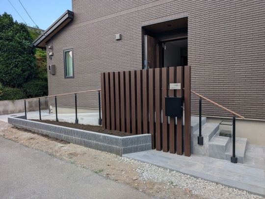 門まわりはクローズにし、デザイン性も機能性も高い外構となりました。
