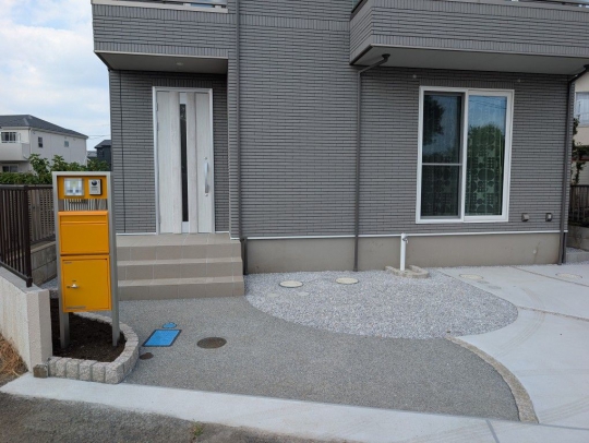 アプローチは洗い出し仕上げとすることで、デザイン性の向上だけでなく滑りにくいので安心です。