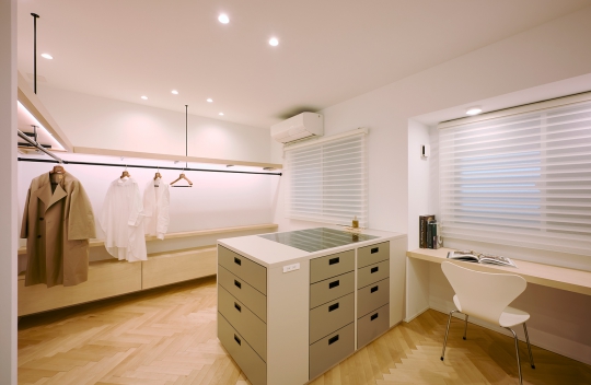 出来る限りワンフロア空間にしたいご希望もあり、2つの子供部屋を1つにしてドレッシングルーム兼ワークスペースを新設。