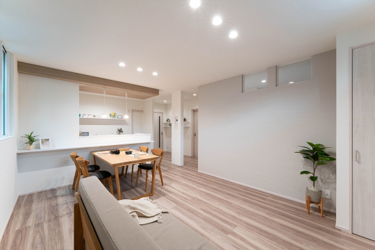 玄関からLDKまでを仕切らず、帰ってきたら我が家を感じられる。