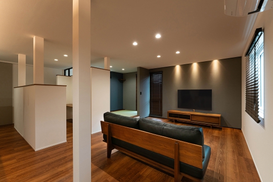 親世帯は和モダン、子世帯はシックなテイストで内装を分け、それぞれの暮らしに合った間取りと水回りを実現。
