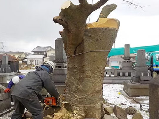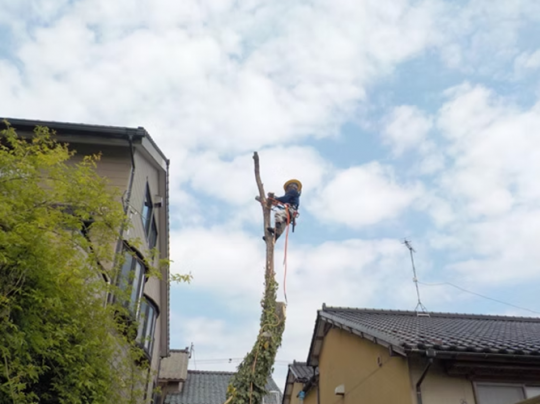作業場所が狭い為、重機が入らないので人手で伐採作業を進めました。