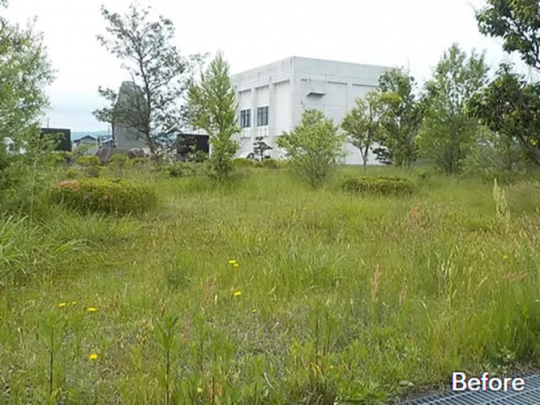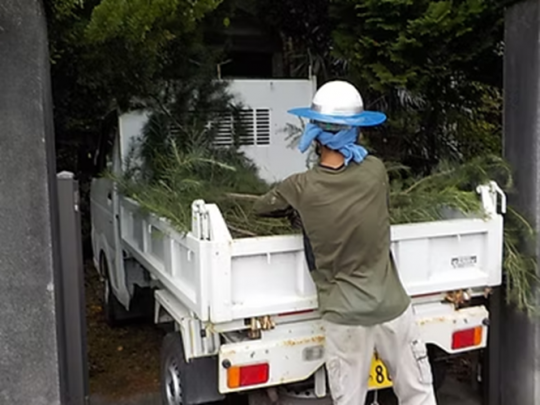 有限会社山作の除草作業は、刈った後の草を運搬し、