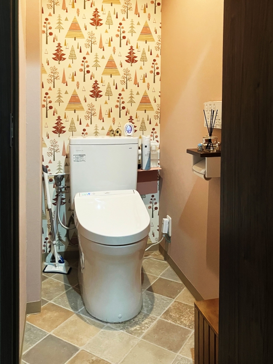 各所に好きなカラーの壁紙をアクセント貼り。