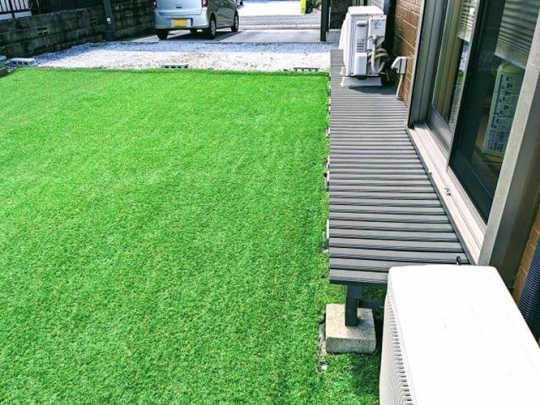 外で子供たちとペットが遊べるように人工芝を設置したい
