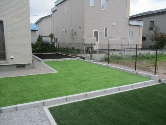 函館日吉町 Y様邸外構工事 花壇、人口芝、フェンス