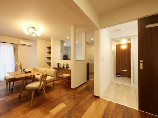 不要な箇所を減築し、動きやすい動線や水廻り配置、仕切りをなくしたLDK空間等、