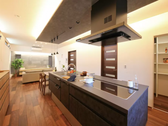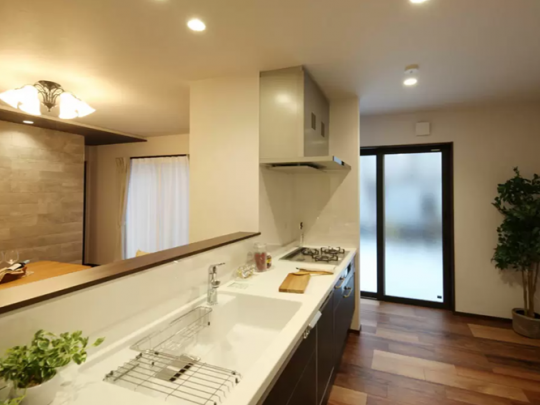 横並びのダイニングキッチンは家族で料理や食事を楽しめる、コミュニケーション高まるオススメの提案です。