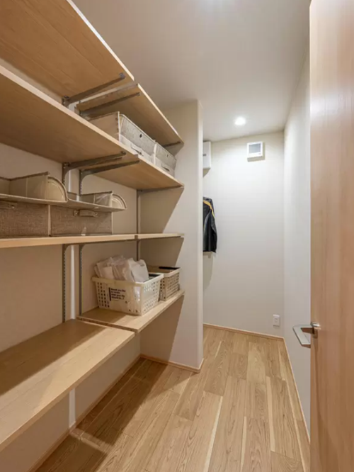 家事動線に組み込まれたファミリークロークなど各所に収納を設けました。