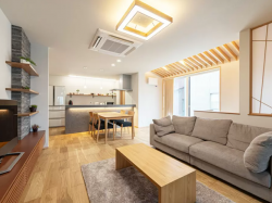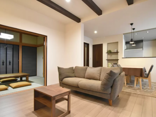 隣接するLDKは和とマッチするモダンなデザインに仕上げました。