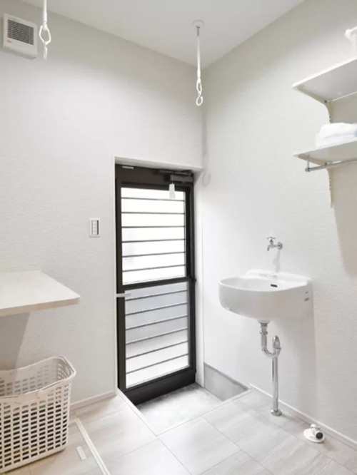 洗面と脱衣室を分け、洗濯がスムーズに行えるようカウンターも新設。