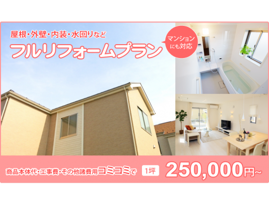 | 対応可能リフォーム | 全面リフォーム / 内装リフォーム / 水回りリフォーム |