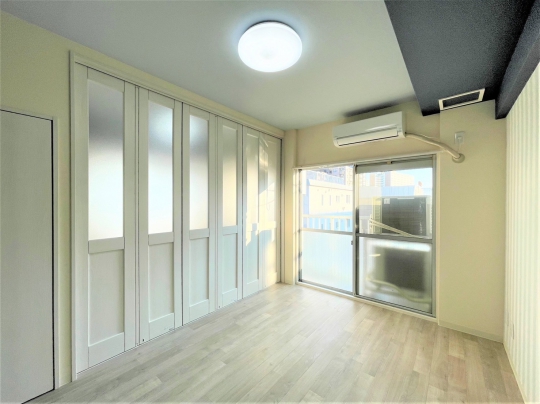 設備交換は3点ユニットか目透かし天井をそのまま生かし、床はあえてパーケット柄にすることで昭和レトロモダンのお部屋にしました。