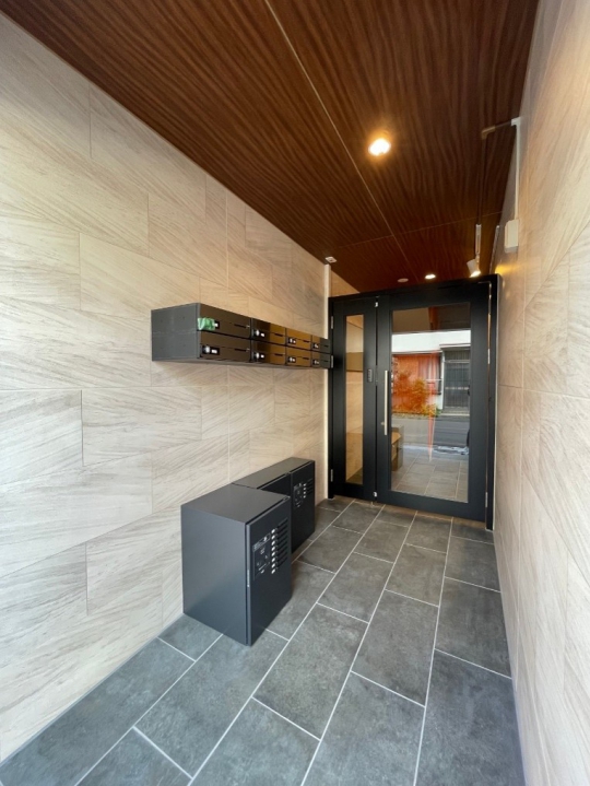 エントランスドアを奥に移動し、集合ポストと宅配ボックスを設置するスペースが出来ました。ドアもオーロックに変更しセキュリティや利便性がアップしました。薄暗かった通路が明るくなり、入った時の印象がグンとアップしました。