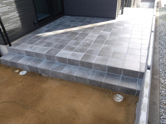 施工費などは、ウッドデッキとかと比べても高くなる傾向になりますが、タイルデッキは草が生えてこないし水洗いできるので、後々のメンテナンスがとっても簡単です。