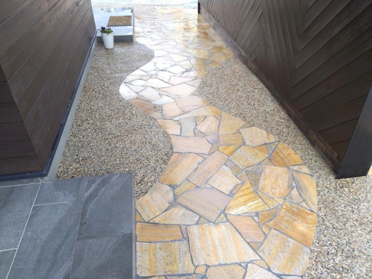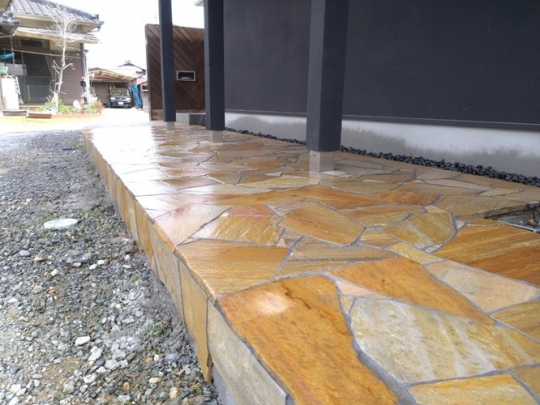 乱形のイエロークオーツで乱張りと耐久性の高い洗い出しで仕上げました。