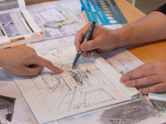オーナー自ら設計図を描きながら打ち合わせを行います。