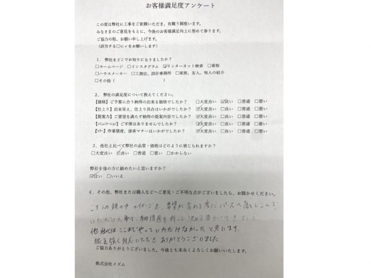 この度は、イズムにお任せ頂きまして、ありがとうございます