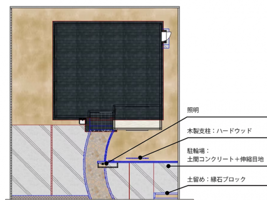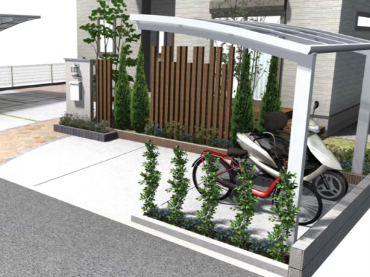 玄関脇の植栽スペースをすっきりさせて、駐輪スペースにしました。
