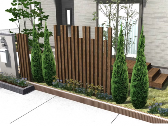 支柱の他には生垣で目線隠しする方法もあります。