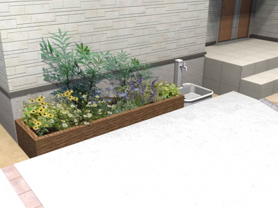 道路側にミニ花壇を作りました。街並みを意識して草花を植えてください。
