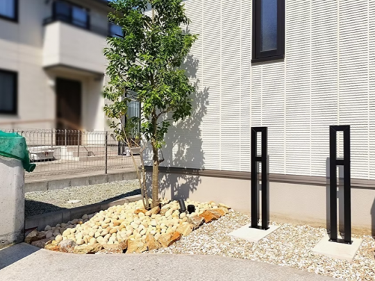 植木の根元も自然石や化粧砂利でおしゃれに演出。