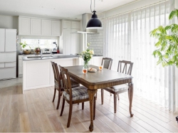 ご実家の2階を若夫婦のご新居とするため、内装も間取りも大きく変更。2つの部屋をつなげ、天井は勾配天井をそのまま活かして広くのびやかなLDKに。内装はこだわりのカリフォルニア・スタイルで統一し、開放的な海辺の家のような雰囲気に生まれ変わりました。