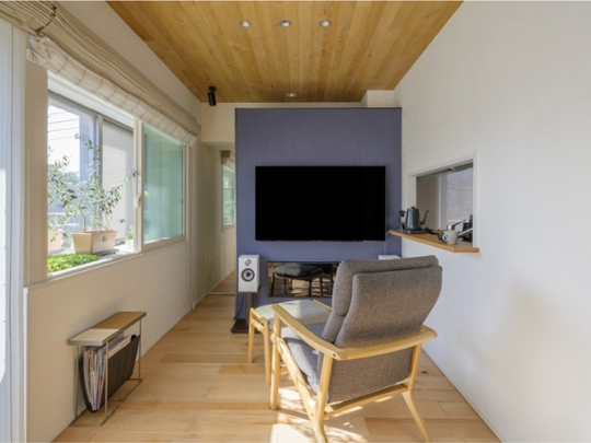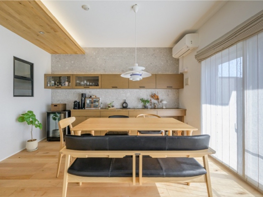 内窓設置や造作家具などをご提案。奥様がピアノ教室を開く元和室は防音対策を施し、LDとの間に壁を新設。LDの位置も入れ替え、青いアクセントウォールの裏にはバックヤード収納も実現しました。「リフォームして3年。結露は一切なく、モノが散らからず、木やタイルが映える空間で快適に暮らしています」とご主人。