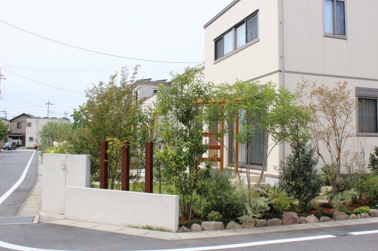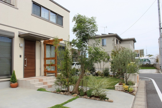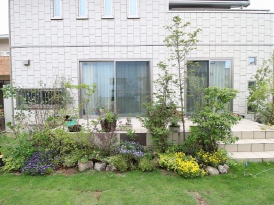 憧れの庭を手にして草木を植えても、思い描いていた憧れの庭とは程とおく、自分で庭をつくることに限界を感じていたというN様。既存の外構を活かしつつ、お庭を広く見せられるようにデザイン。実用的でありながら、暮らしにいろどりを与えるステキなお庭が完成しました!