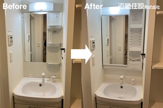 使い込まれた洗面台を、機能性の高い最新モデルへとリフォームしました。