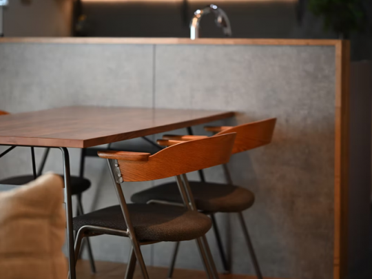 塗り壁、古材を張った仕切り壁など、年月を経て味わいが深まっていくような空間となっている。