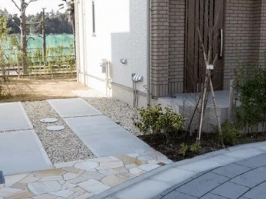 悪天候の中でもすぐに打ち合わせに来てくださり、ありがとうございました。高齢の母の要望にも丁寧に応えてくださり、デザインや植栽、レンガの提案などもとても助かりました。中央のサークルは、以前雑草が多かった我が家にぴったりのデザインで、とても気に入っています。雨の後も水はけがよく、北側の敷地も快適になりました。ご近所の方にも好評で、お願いして本当によかったです。