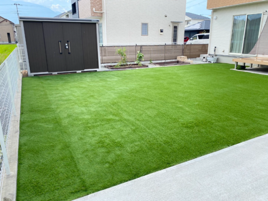 家屋周りの敷砂利・人工芝