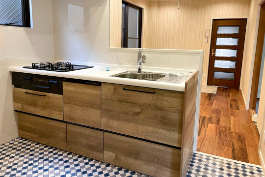 ・壁付けキッチンを対面式キッチン(クリナップ ラクエラ)に変更 ・DK、トイレ、浴室、洗面室の間取り変更