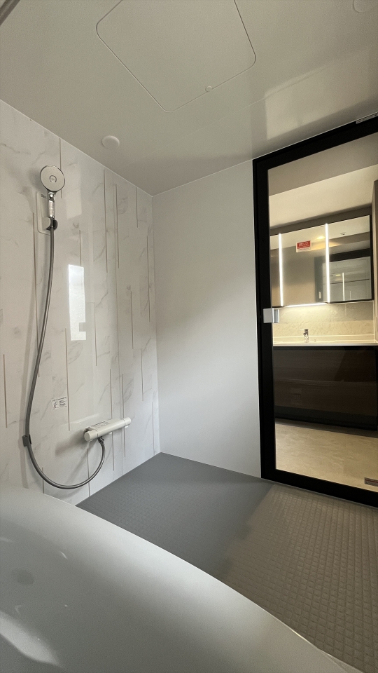 洗面室から浴室にかけアドバンのメガガラスを採用