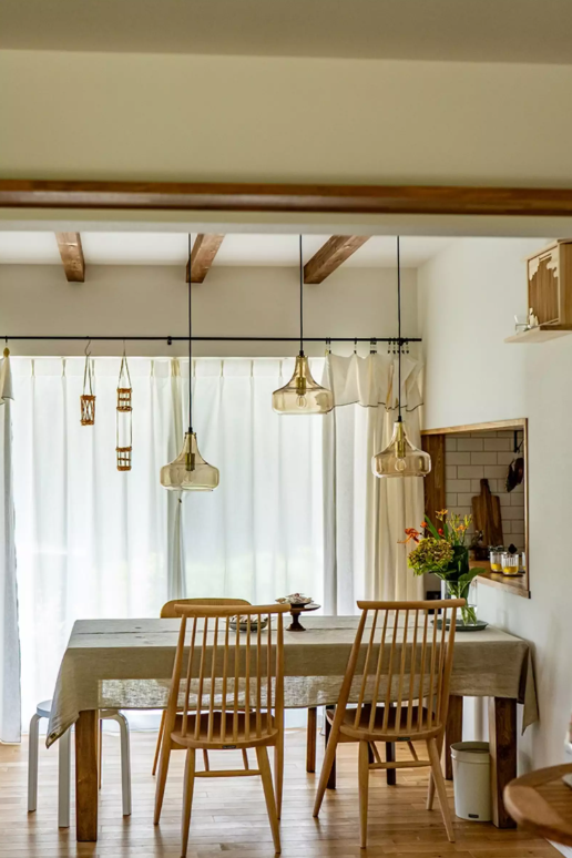 座るとついついゆっくりしてしまうようなダイニング。カーテンを開ければお庭と繋がり、のどかな景色も眺められます。