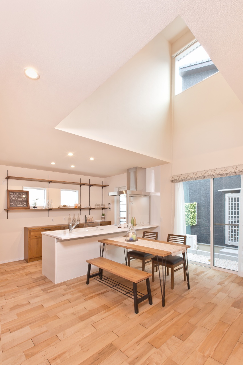 さらに、床の段差や吹き抜けなど空間に高低差を設けることで、広がりと開放感のある居心地のよい空間を実現しています。