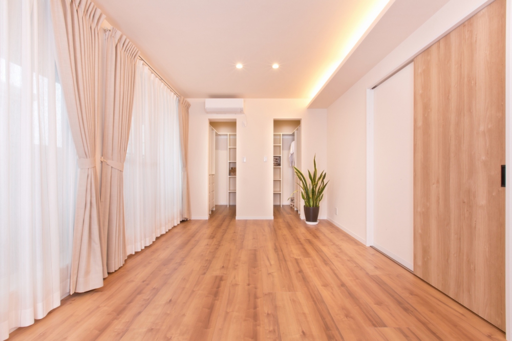 床や折下げ天井など、建物全体に無垢材を用い、「木」本来の温かみを感じられる住まいに仕上げました。