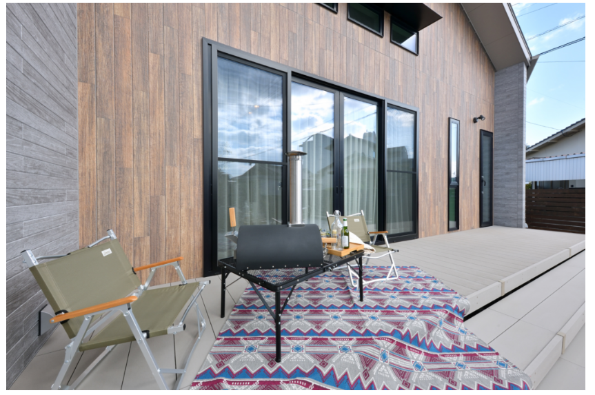 リビングの窓を開けると、外空間に設けたアウトドアリビング。広々としたこの空間で、BBQや日向ぼっこなど、家族で特別な時間を楽しむことができます。