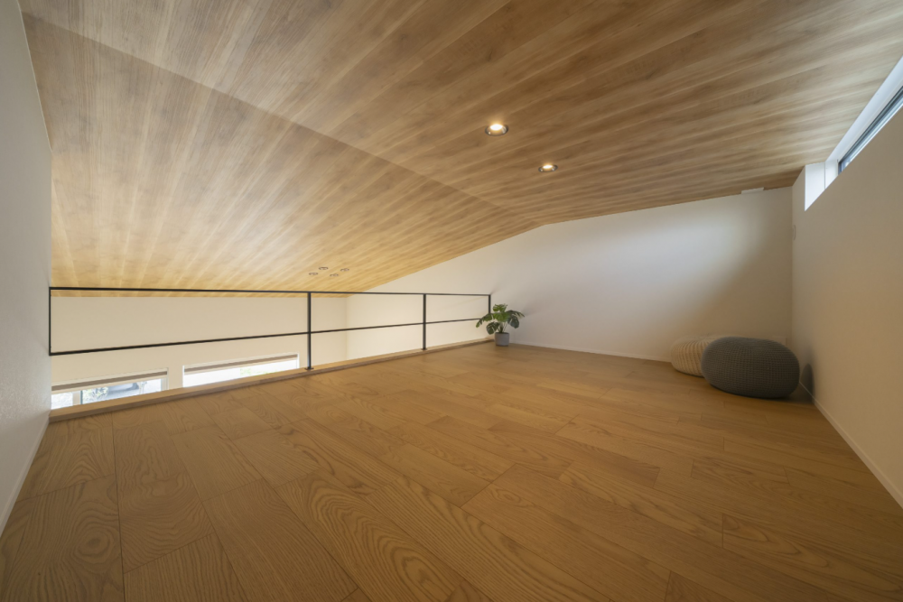 開放感のあるロフトと勾配天井、スタイリッシュな平屋