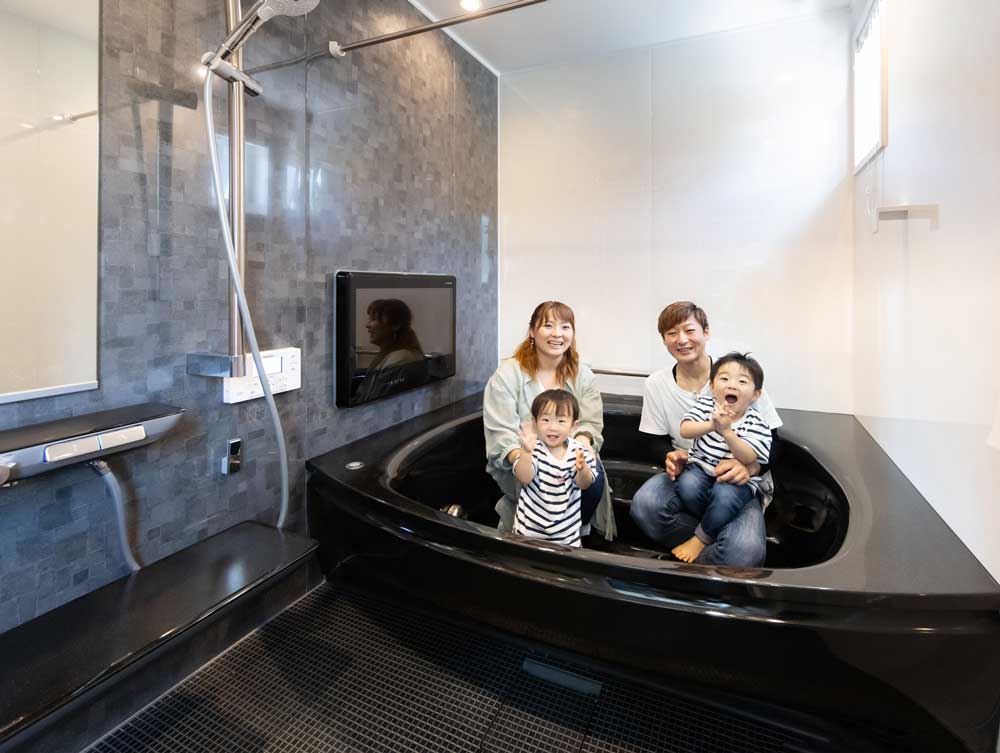 数多くある標準装備の中で人気の高い1.5坪の大型バスルーム。家族みんなで入っても余裕の広さ