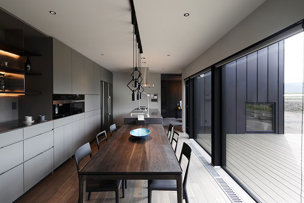自由で、唯一無二のデザインです。未来に向かい、心の琴線に触れる建築。各室からも四季の移り変わりを感じることができます。豊かな自然に囲まれた憧れの住まいです。