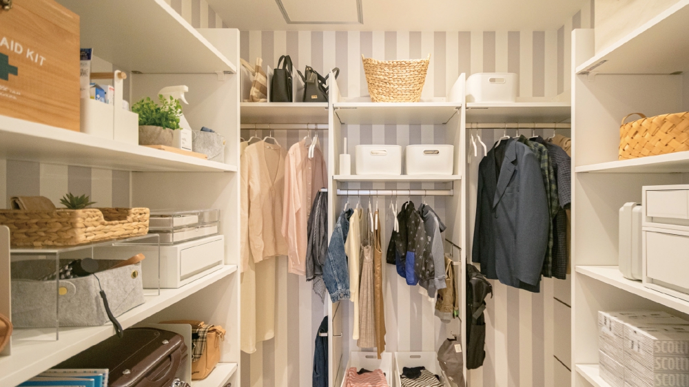 2つの玄関のすぐ近くに配置したファミリークローゼット。掃除用具や普段使いの制服・コート、ランドセルまでひとまとめに収納できるので、家の中が自然と片付きます。 扉を閉めればすっきりとした印象に。毎日の「しまう・取り出す」がスムーズになる、家族みんなにうれしい収納です。
